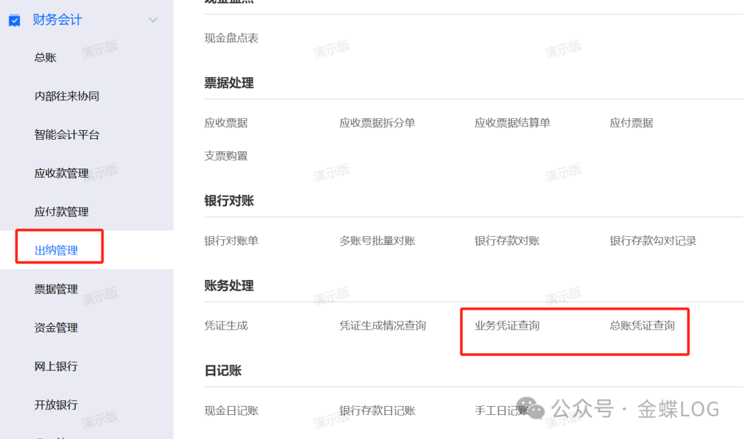 这里查询出来的凭证就是所有模块的数据,跟下面第④个总账路径查出来的数据是一样,只是这里多了一个【业务凭证的查询】