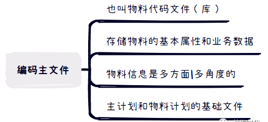 它是进行主生产计划和物料需求计划运算的最基本文件。各种ERP软件的物料编码主文件的内容不尽相同。