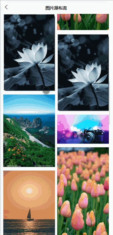 本文热度 3934 |  简要介绍:瀑布流布局是一种以流式展示内容的方式,使内容以类似瀑布流一样的形式逐个排列,这种布局方式在网站中广泛应用,特别是在图片和商城类型上。 1. 图片瀑布流:不依赖任何插件,复制即可见效: <template><view class="page">