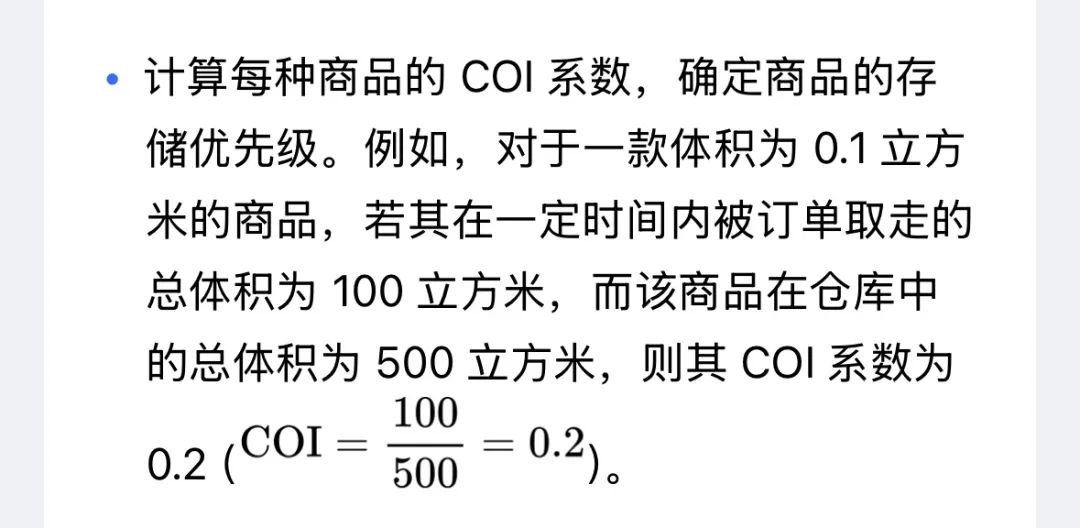 根据 COI 系数的大小,可以将货物分为高、中、低三个等级。高 COI 系数的货物通常被频繁订购,应存放在靠近出口或易于访问的位置,以便快速分拣和配送。中 COI 系数的货物可以存放在中间区域,而低 COI 系数的货物则可以存放在较远的位置。