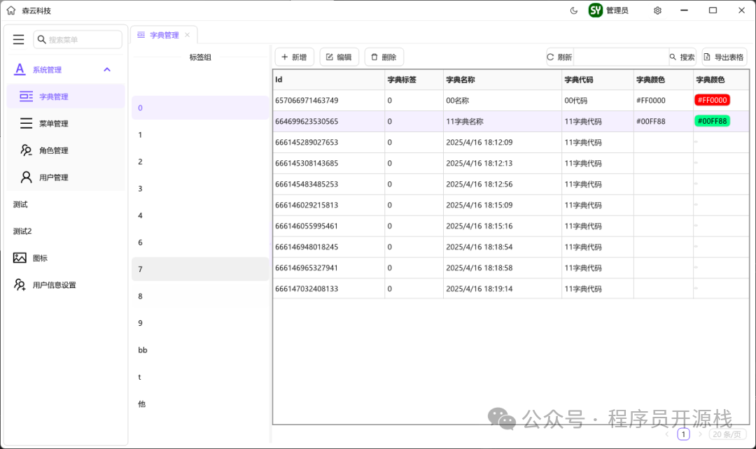 • 字典管理:提供增删改查功能,方便管理系统中的各类字典数据。