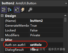 设计页面拖入 Auth ,然后点击按钮,按钮上就会多一个属性