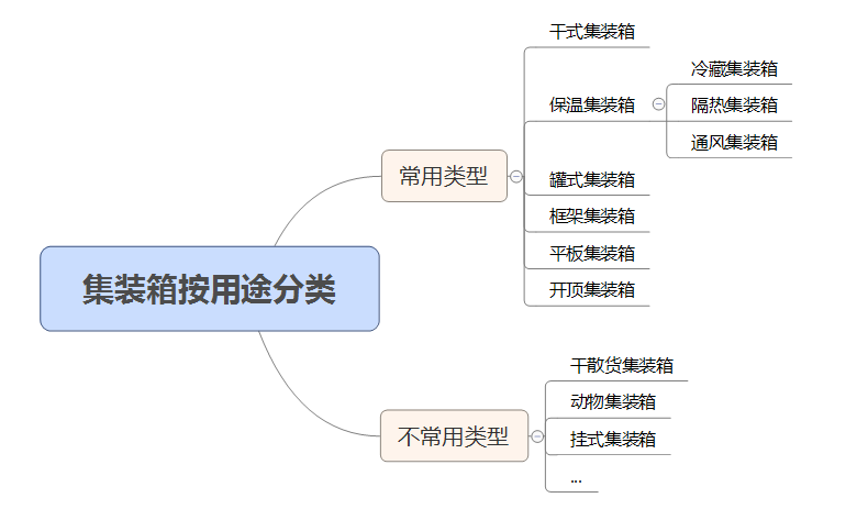 ![]() 普通集装箱,又称干货集装箱(dry container)以装运件杂货为主,通常用来装运文化用品、日用百货、医药、纺织品、工艺品、化工制品、五金交电、电子机械、仪器及机器零件等。这种集装箱占集装箱总数的70 ~ 80%。除了冷冻货、活的动物、植物之外,在尺寸、重量等方面适合集装箱运输的货物,均可使用干货集装箱。 2、冷冻集装箱![]() 冷冻集装箱(refrigerator container)分外置和内置式两种。温度可在-60℃ ~ +30℃之间调整。内置式集装箱在运输过程中可随意启动冷冻机,使集装箱保持指定温度;而外置式则必须依靠集装箱专用车、船和专用堆场、车站上配备的冷冻机来制冷。这种箱子适合在夏天运输黄油、巧克力、冷冻鱼肉、炼乳、人造奶油等物品。 3、保温集装箱![]() 保温集装箱(insulated container)箱内有隔热层,箱顶又有能调节角度的进出风口,可利用外界空气和风向来调节箱内温度,紧闭时能在一定时间内不受外界气温影响。适宜装运对温湿度敏感的货物。 4、通风集装箱![]() 通风集装箱(ventilated container)箱壁设有4-6个通风孔,内壁涂塑料层,适宜装新鲜蔬菜和水果等怕热怕闷的货物。 5、罐式集装箱![]() 罐式集装箱(tank container)又称液体集装箱。是为运输食品、药品、化工品等液体货物而制造的特殊集装箱。其结构是在一个金属框架内固定上一个液罐。国际标准罐是一种安装于紧固外部框架内的不锈钢压力容器。罐体内胆大多采用316不锈钢制造。多数罐箱有蒸气或电加热装置,惰性气体保护装置,减压装置及其它流体运输及装卸所需的可选设备。 6、框架集装箱