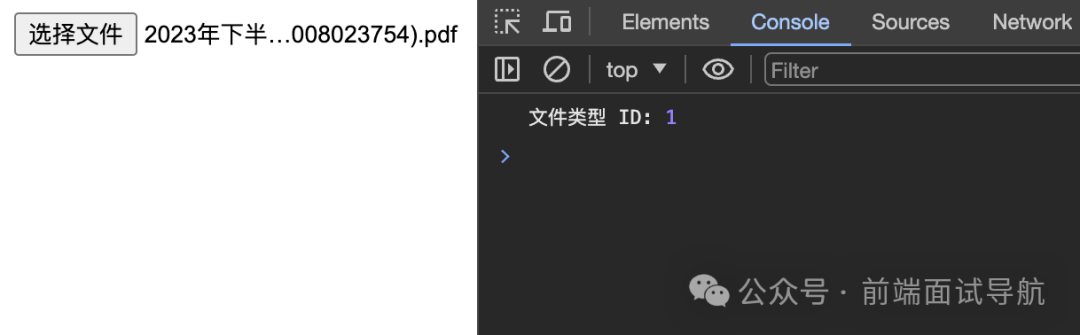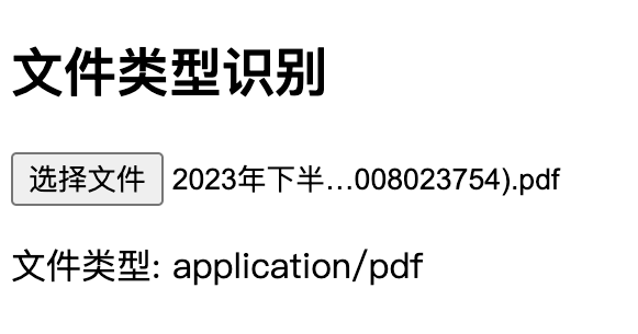 当我们使用 HTML 的 <input type="file"> 标签时,可以通过文件的 type 属性获取 MIME 类型: