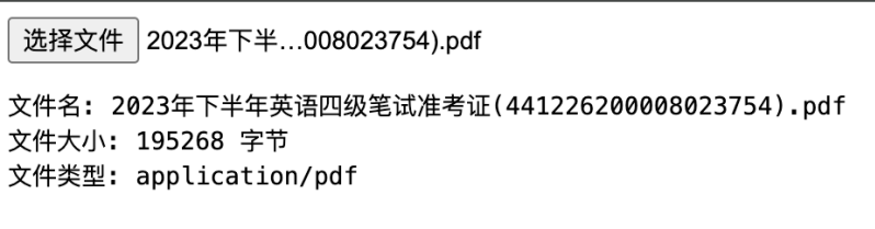 const fileInfo = `文件名: ${file.name}<br>文件大小: ${file.size} 字节<br>文件类型: ${file.type}`;