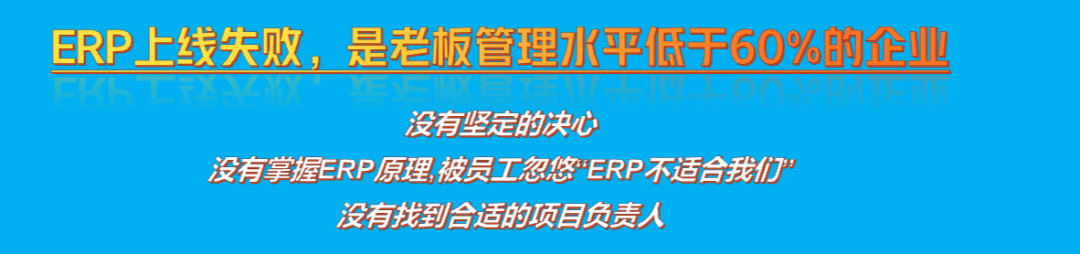 为什么有的企业上线ERP会失败?抛开10年前的案例不谈,如果最近10年,如果还有企业上线ERP不成功,我认为最根本的原因是:老板的认知及管理水平太差,至少低于60%的老板。