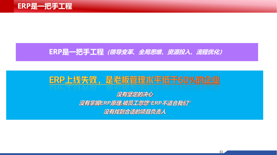 2.老板缺乏ERP的知识,没有掌握ERP的原理,容易被干部员工忽悠“ERP不适合我们”
