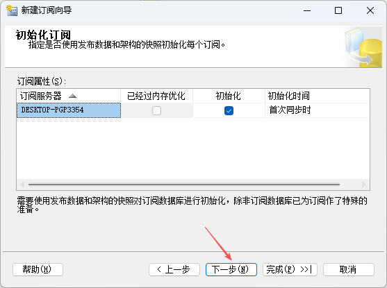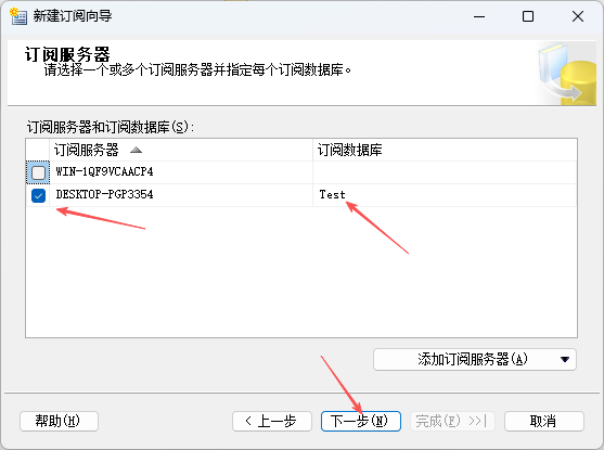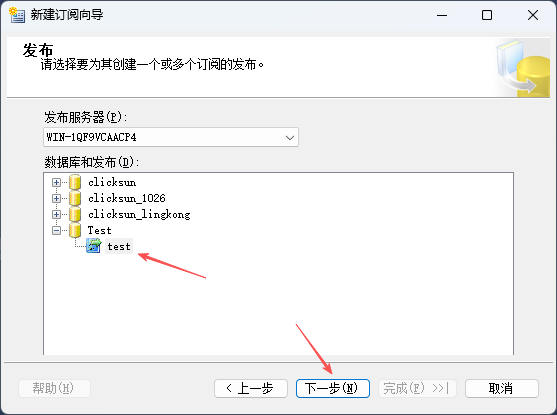 1. 在刚刚建立的发布右键-新建订阅,第一个页面默认下一步,选择订阅的发布,下一步
