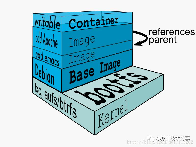 Docker的镜像机制是有层次感的,一个镜像可以放到另一个镜像的顶部。位于下端的为父镜像,以此类推;最底部的镜像可称为基础镜像。 镜像采用分层构建,每个镜像由一系列的镜像层组成, 当需要修改容器内的某个文件时,只对处于最上方的读写层进行变动,不覆盖下面已有文件系统的内容。当提交这个修改过的容器文件系统为一个新的镜像时,保存的内容仅为最上层读写文件系统中被更新过的文件。