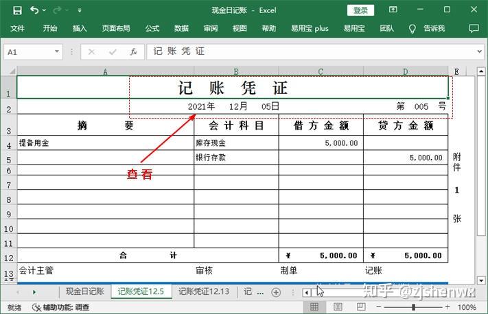 单击“记账凭证12.5”工作表标签,查看其中有关记账凭证的日期、编号等相关数据。