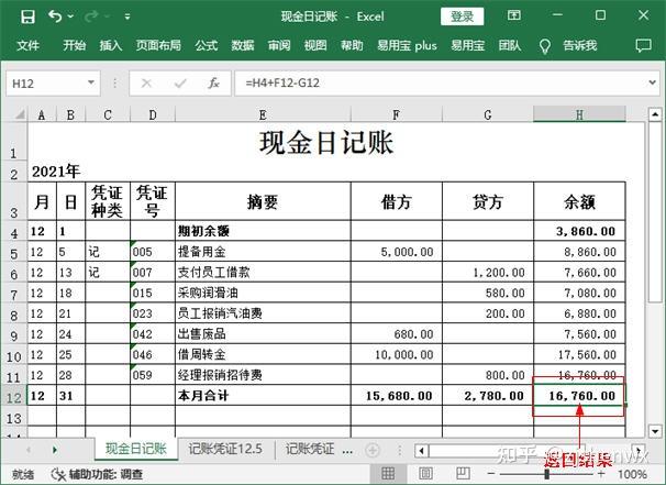 按【Ctrl+Enter】组合键返回计算结果,很明显此结果应当与最后一笔现金业务发生后的余额相等,进而可以通过它实现对现金余额的验证。