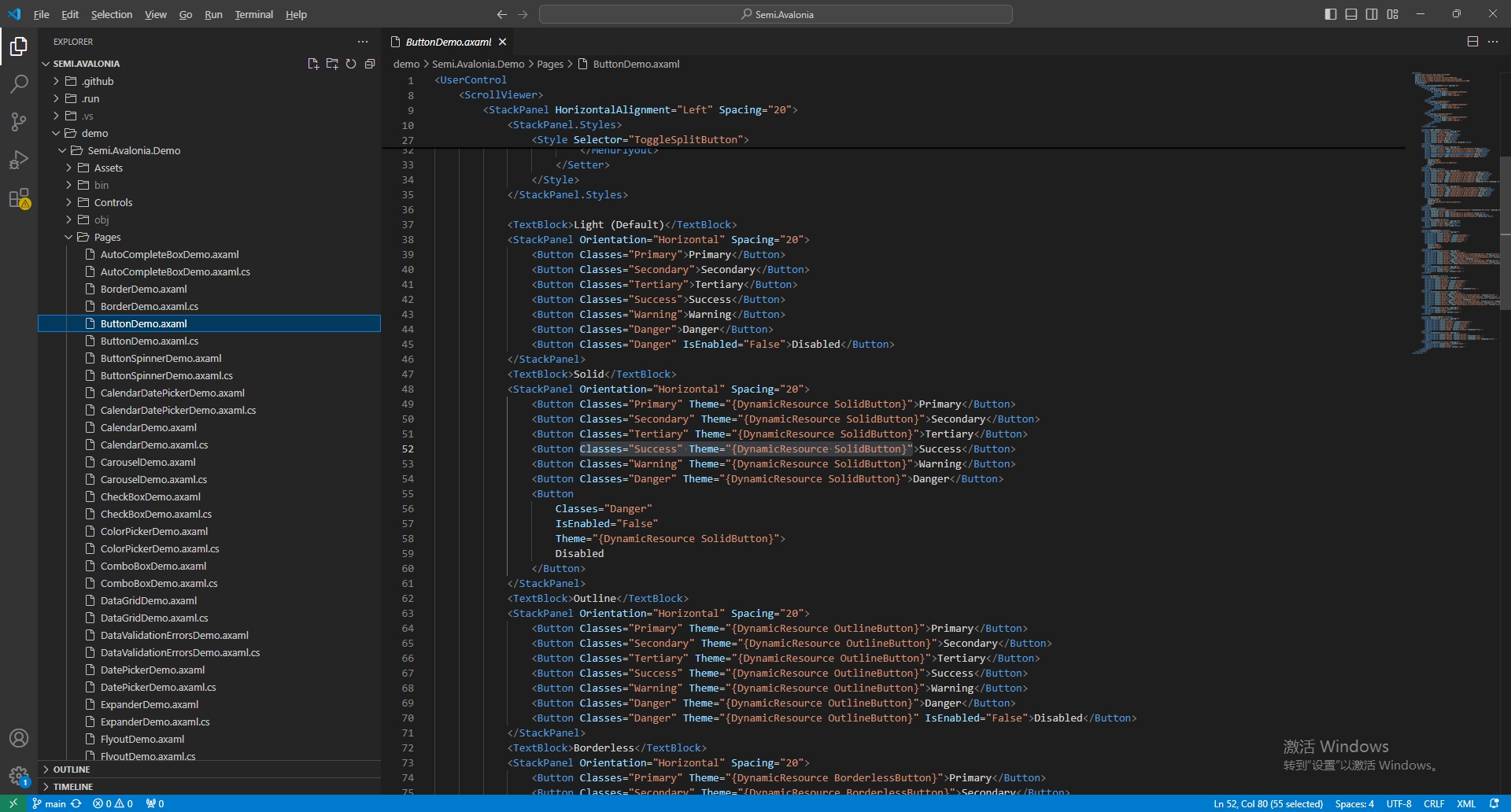 2. 找到Pages目录,打开ButtonDemo.axaml