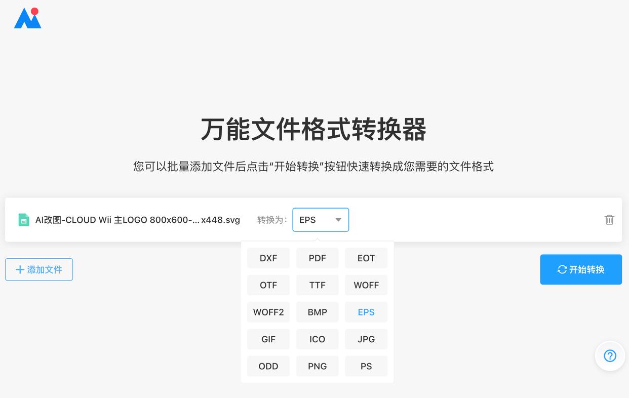 现在我们已经获得了SVG格式的图片,在印刷时就可以直接发给图文店,但是有时候对方又会要求提供PSD、EPS等其他格式的文件,该怎么处理呢?可以试试这个万能文件格式转换器在线转换SVG格式为其他图片格式。