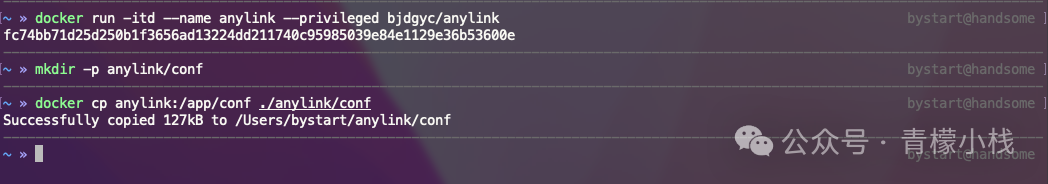 获取默认配置文件首次运行容器以生成默认配置文件,并拷贝到宿主机: