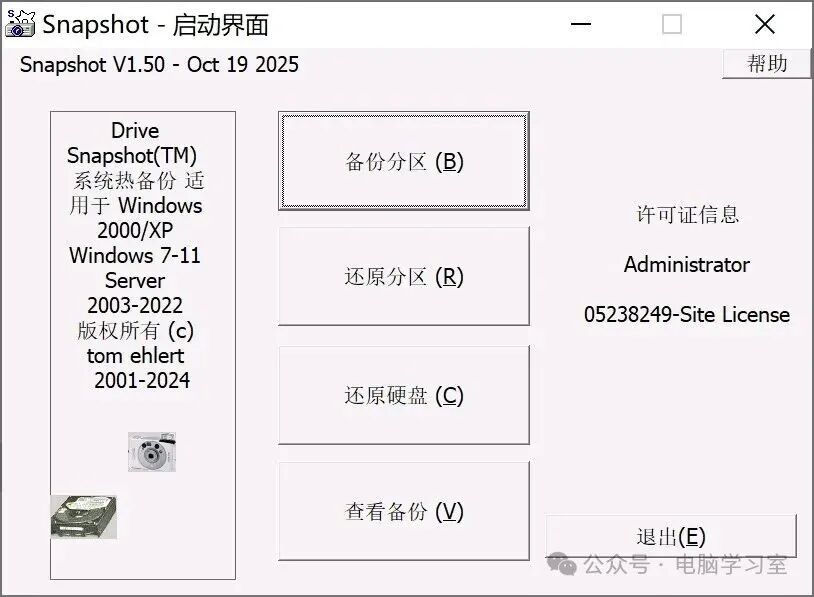 [点晴永久免费OA]一款功能强大的磁盘备份还原软件--Snapshot,v1.50.0.1748 新版本,中文绿色便携版