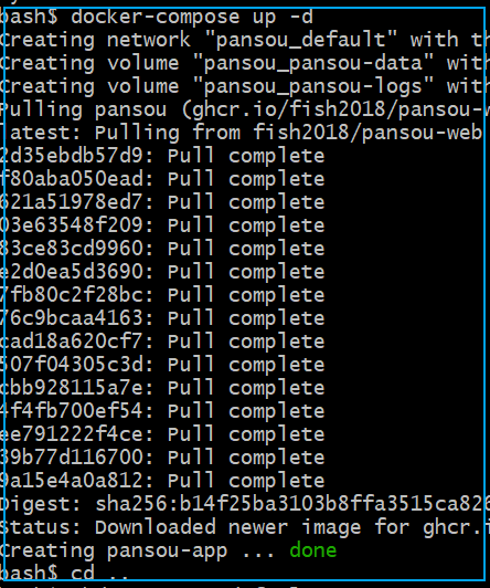 $ mkdir -p pansou$ cd pansou# 下载配置文件$ curl -o docker-compose.yml https://raw.githubusercontent.com/fish2018/pansou-web/refs/heads/main/docker-compose.yml# 启动服务$ docker-compose up -d