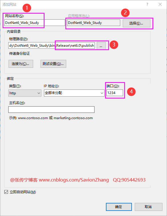 (2)应用程序池选择第1步中新建的“DotNet6_Web_Study”