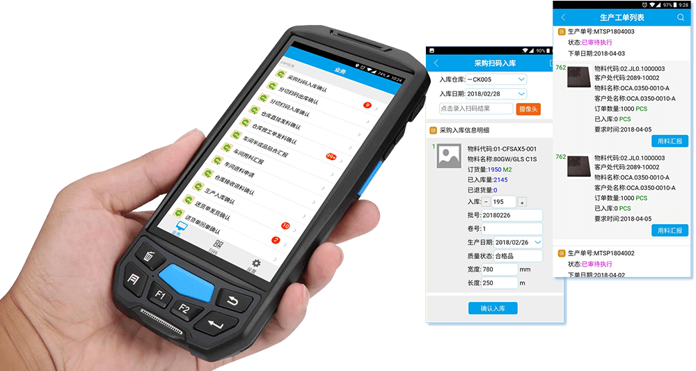 通过移动扫码追溯,扫码操作涵盖了从原材料入库到领料、成品入库到出库、用料用工汇报、IQC来料品检到FQC成品终检的全过程,随时掌握每张订单的生产状态,避免延误。
